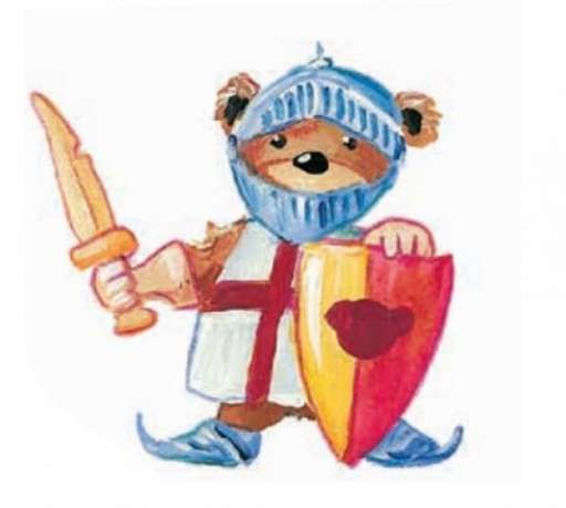 „Du kannst gerne zuhören“, sagte er, „ich bin gerade an der Stelle, wo der Ritter Teddy den Drachen besiegt.“ Das Gespenst nickte begeistert, denn es liebte Rittergeschichten.