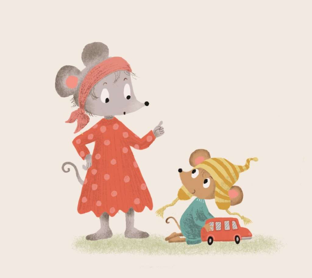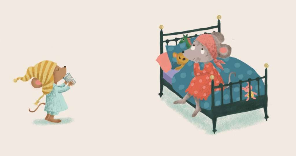 „Es ist schon spät, du musst ins Bett!“, sagt Mama Maus zur kleinen Maus.