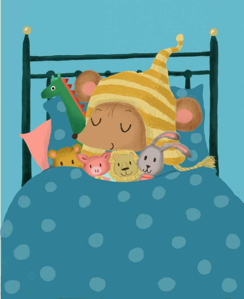 „Noch 5 Minuten!“, ruft die kleine Maus. „Ich muss noch alle meine Kuscheltiere schmusen. Mama, wo ist nur mein Löwe? Mein Löwe ist nicht da!“